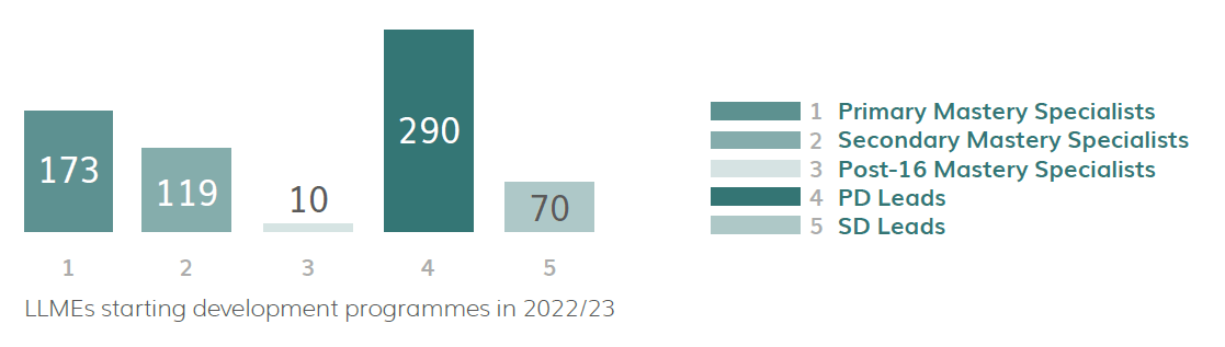 The ambition is for each Maths Hub to have a team of at least 50 active LLMEs (2,000 across the country) in any year, providing an appropriate range of expertise to address the needs of schools in the Maths Hub area.
